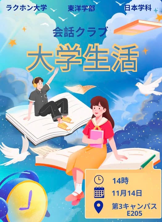 Trong buổi sinh hoạt CLB Kaiwa, chúng ta sẽ cùng nhau trò chuyện bằng tiếng Nhật xoay quanh chủ đề “Cuộc sống sinh viên” ー 大学生活 . Đây không chỉ là dịp để bạn chia sẻ những câu chuyện và trải nghiệm trong cuộc sống sinh viên của mình, mà còn là cơ hội để lắng nghe, thấu hiểu và học hỏi từ những trải nghiệm thú vị của người khác!