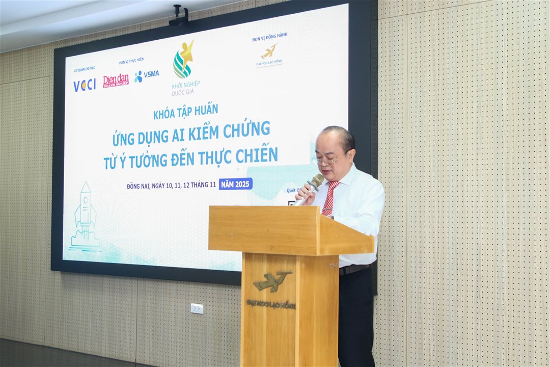Sáng ngày 10 tháng 11 năm 2025, tại Trường Đại học Lạc Hồng, đã chính thức khai giảng Khóa tập huấn giảng viên nguồn, cố vấn chuyên sâu về khởi nghiệp Đổi mới Sáng tạo (ĐMST) với chủ đề "Ứng dụng AI kiểm chứng từ ý tưởng đến thực chiến!".
