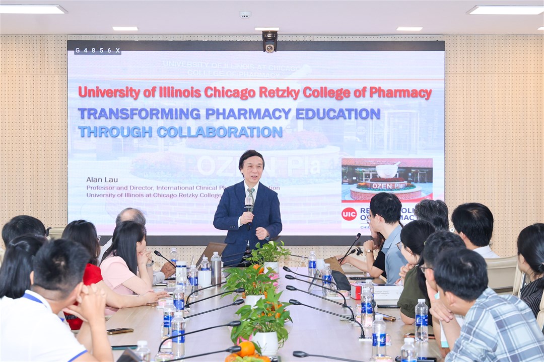 Tại chương trình, GS. Alan Lau đã giới thiệu về chương trình học tập hè tại Đại học Illinois Chicago (UIC), qua đó mở ra cơ hội để giảng viên và sinh viên Khoa Dược LHU tiếp cận môi trường học thuật quốc tế, nâng cao năng lực chuyên môn và mở rộng trải nghiệm thực tiễn trong lĩnh vực Dược lâm sàng.