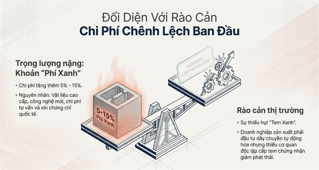 Chi phí xây dựng thường cao hơn 5–15% do yêu cầu về vật liệu và công nghệ.