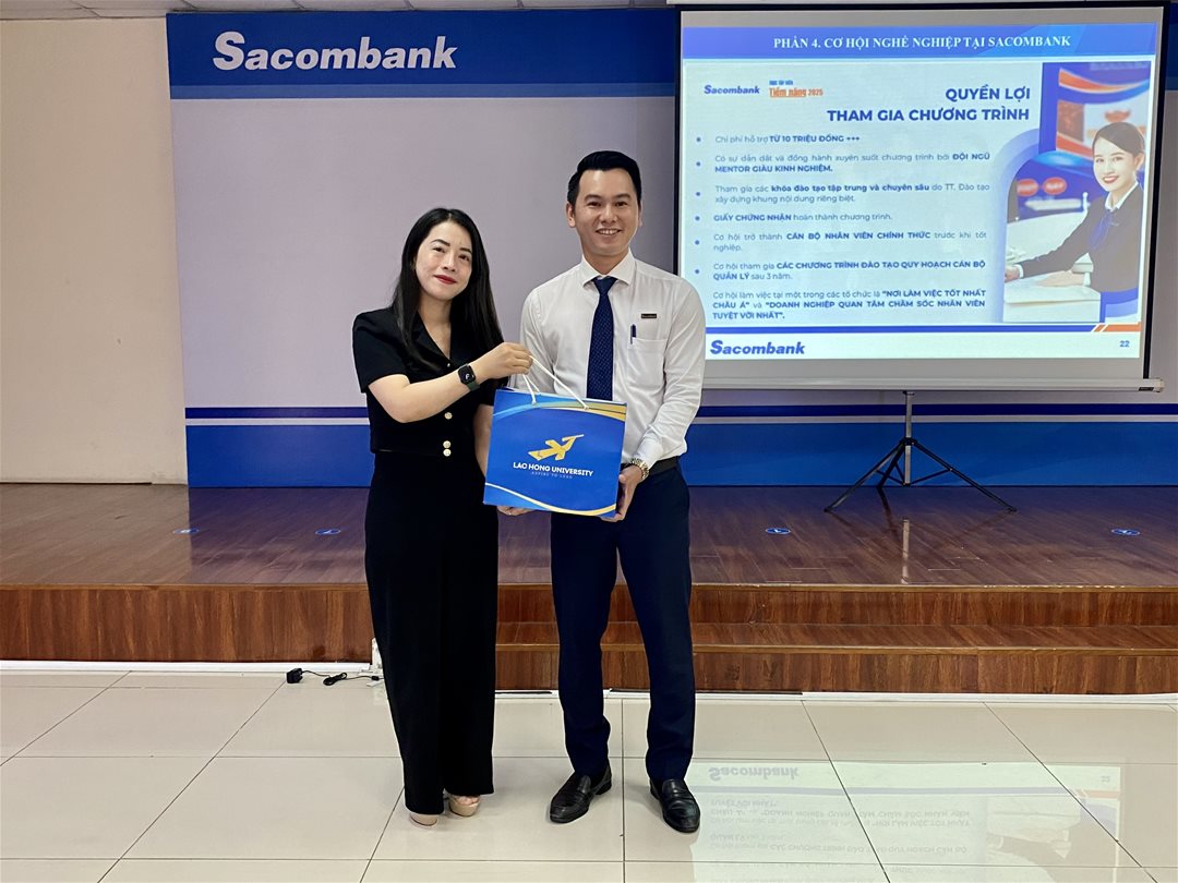 At the conclusion of the program, representatives of the Faculty of Finance and Accounting, Lac Hong University, extended their gratitude and presented a commemorative gift to Sacombank Dong Nai Branch, while also capturing memorable moments through group photographs.