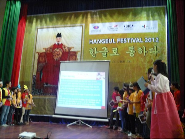 More than Lac Hong University’s 100 students of Korean Studies - Faculty of Oriental Studies took part in Hangeul Festival 2012 on November 4 at University of Social Sciences and Humanities. The event was held by Korea Foundation, Korean Cultural Institute and KOICA (Korea International Cooperation Agency) in cooperation with University of Social Sciences and Humanities. The festival attracted the great participation of nearly 1,000 students coming from Southern universities and colleges.