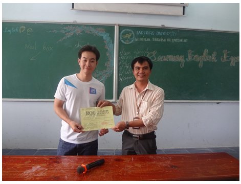 At the end of the meeting, a scholarship from Informatics and Foreign Language Center of LHU was awarded to Tran Vu, a senior student from the Faculty of Information Technology, being an excellent winner in TOEIC mini-test and quizzes.