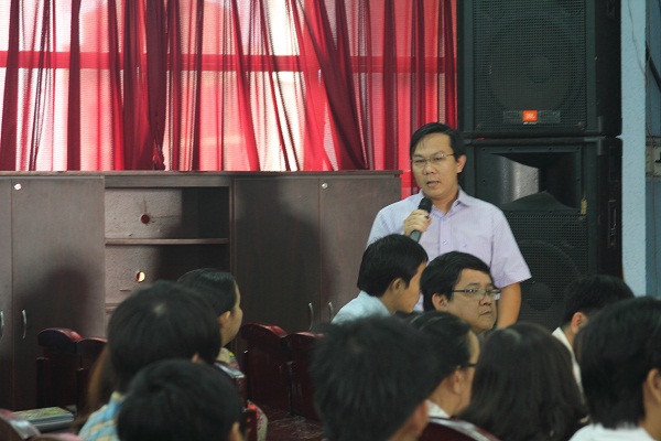 At the program, the participants raised many questions to the Board. These questions mainly focused on areas such as education, scientific research, internships, facilities upgrading, training majors, .... The Board directly responded to these questions.