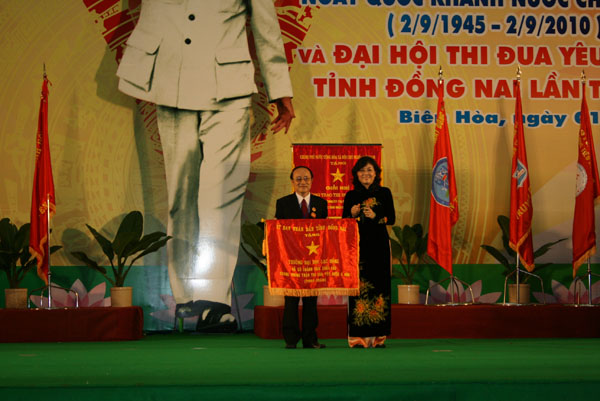 At the ceremony, Mr. Vo Van Mot – Chairperson of Dong Nai provincial People's Committee made a commemorative speech on the 65th anniversary of National Day of the Socialist Republic of Vietnam, jointly reviewing our nation’s gloriously historical traditions in August Revolution 1945. After that, Mr. Le Mai Thanh - Deputy Director of Department of Interior Affairs, Permanent Vice Chairman of Dong Nai provincial Emulation and Reward Council approved reports on the patriotic emulation movements in the past five years (2005-2010) and mission directions next five years (2010-2015).