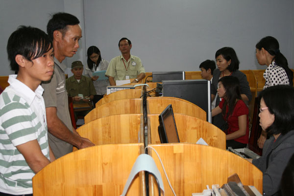Previously, in the weekly meeting, Dr. Tran Hanh – Headmaster of LHU emphasized that the Training Department and other relevant parts must be well-prepared for the admission of new students. Right from the very early morning, parents and new students were present for admission. At room A 301, while waiting their turns to admission, new students and parents were instructed on how to use the learning and research supporting services such as checking students’ ID numbers, viewing marks, downloading materials and schoolbooks... Also in the admission day, the remote students having accommodation needs at the school's dormitory or looking for rooms can contact the Union -Association staff.