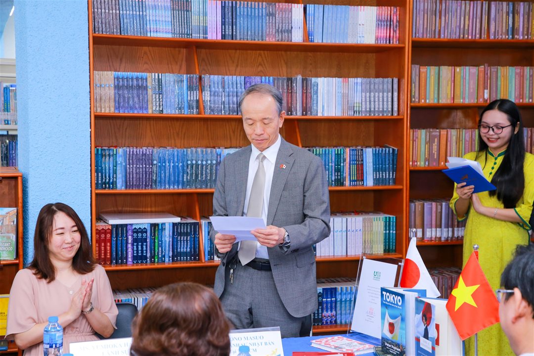 Addressing the ceremony, Assoc. Prof. Dr. Lam Thanh Hien expressed his appreciation for the Consulate General’s support. He highlighted the meaningful impact of the Read Japan Project, emphasizing that the donated books not only benefit students but also serve as important references for lecturers and researchers seeking deeper insights into Japanese education, culture, and science. These books will be added to the Library’s catalog for readers to access.