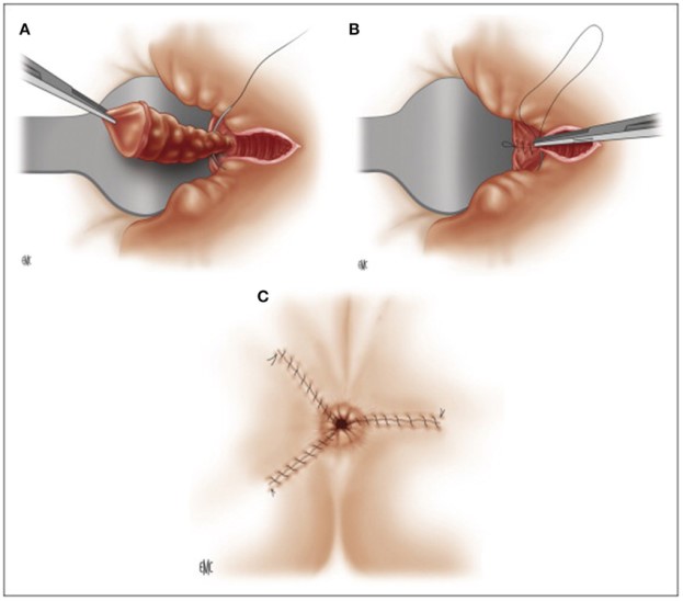 Figure 4. Surgical treatment of hemorrhoids: Ferguson technique.